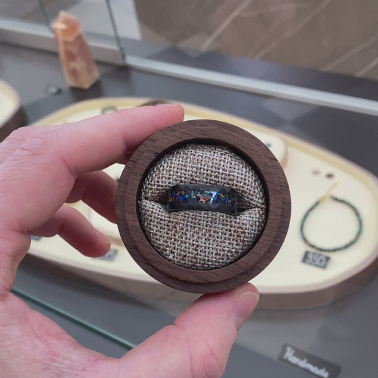 In Japanese philosophy, wabi-sabi teaches that no two things are ever the same — beauty lives in the unrepeatable. This band carries that truth: Galaxy Opal shifting like a living sky, set beside meteorite fragments born before Earth itself. Each ring is singular, a constellation of craft, never to be repeated.