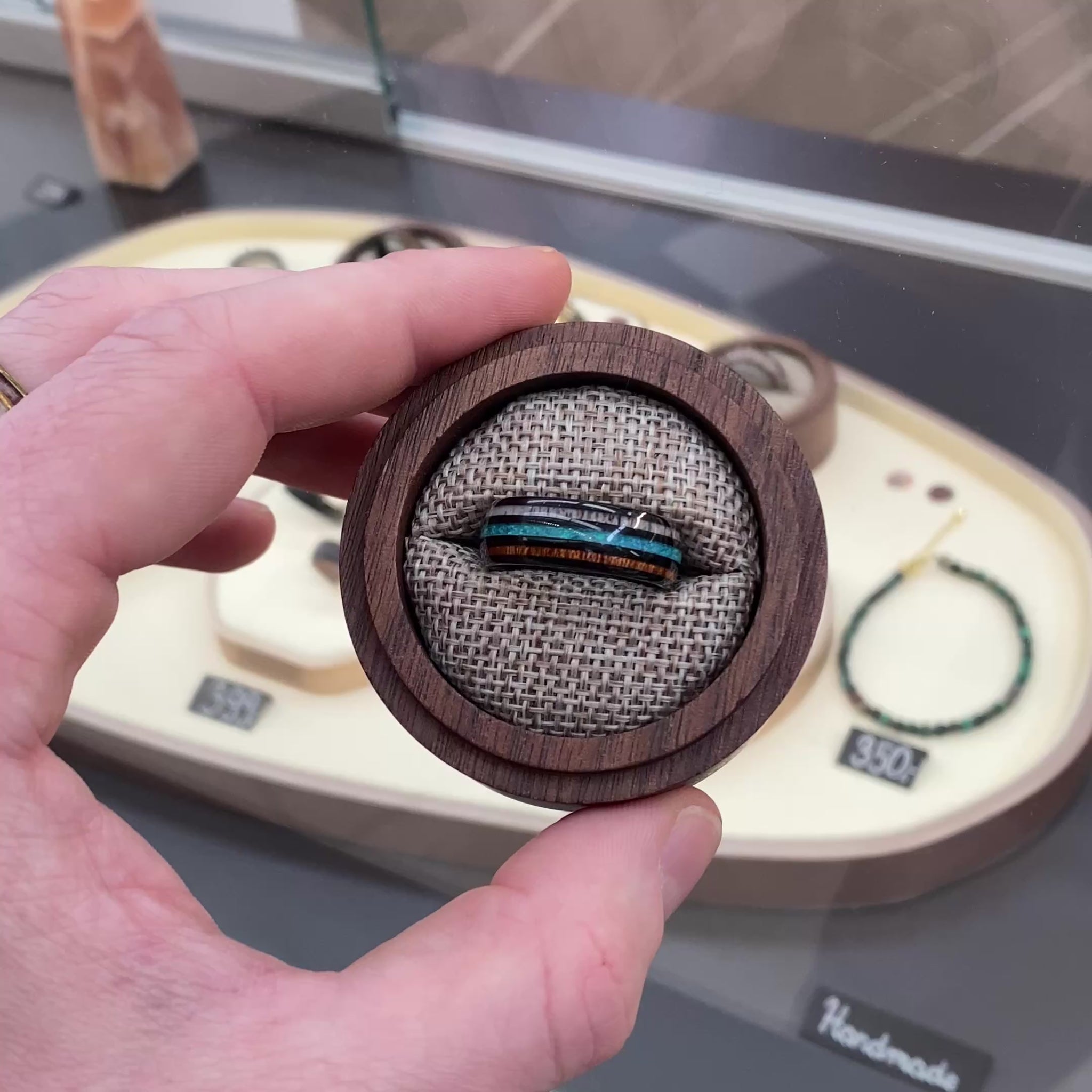 Engraving is applied to the wooden presentation box only — not the ring.